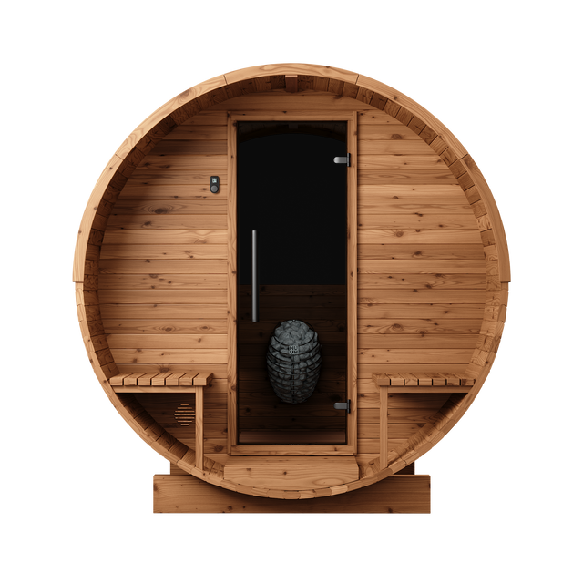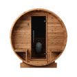 4-person, premium-quality DIY Barrel Sauna Kit with front porch. Tall enough to stand in comfortably, this is the largest, most spacious barrel sauna available. Includes a front porch with comfortable benches for added convenience. Quality materials and superb engineering make this the very best outdoor sauna.