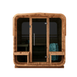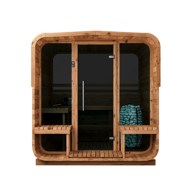 Unlike cramped barrel saunas, the square design offers full standing height and deeper benches perfect for lying down and truly stretching out during your wellness sessions.