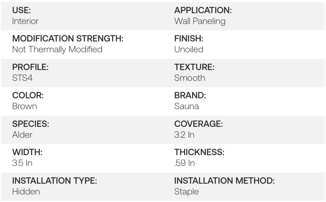 Natural Alder Sauna 1X4 Wall Paneling