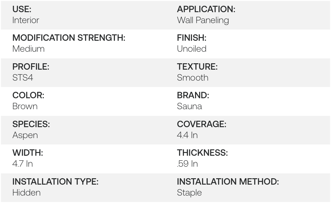 Thermo Aspen Sauna 1X5 Wall Paneling